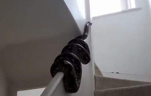 പടികയറാന്‍ വേറെ ആളെ നോക്കണം; കൈവരിയിലൂടെ ഇഴഞ്ഞു കയറികൂറ്റന്‍ പെരുമ്പാമ്പ്
