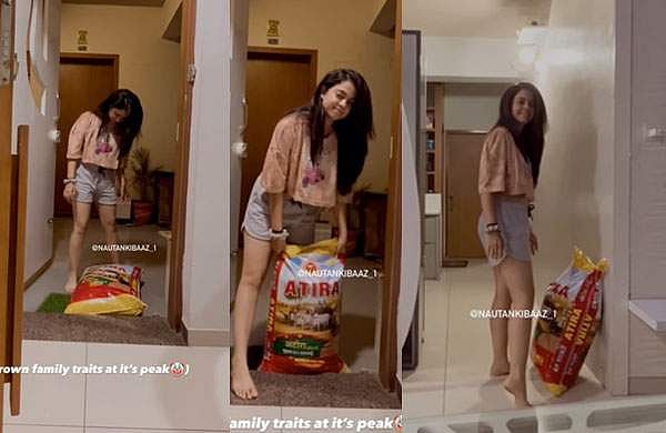 ഒടുവില് കുറച്ചു നേരത്തെ പരിശ്രമത്തിനൊടുവിൽ ചാക്ക് വീടിനകത്തെത്തി. വിഡിയോ ഇതിനോടകം ലക്ഷക്കണക്കിന് ആളുകളാണ് കണ്ടത്. രസകരമായ നിരവധി കമന്റുകളും വിഡിയോയ്ക്ക് താഴെ വന്നു. 'നല്ല അമ്മ' എന്നായിരുന്നു ഒരാള് വിഡിയോയ്ക്ക് താഴെ കമന്റ് ചെയ്തത്. ജിമ്മില് പോകുന്നവരെ മാനിക്കരുതെന്നും പലരും തമാശരൂപേണ കമന്റിട്ടു.