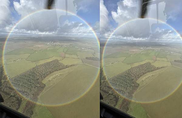 വിമാനത്തിൽ നിന്നോ ഉയരമുള്ള കെട്ടിടത്തിൽ നിന്നോ ഇത്തരത്തിൽ പൂർണവൃത്താകൃതിയിലുള്ള മഴവില്ല് കാണാൻ കഴിയുമെന്നാണ് റിപ്പോർട്ടുകൾ പറയുന്നത്. താഴെയുള്ള ഭാഗം സാധാരണയായി ചക്രവാളത്തിൽ നിന്ന് മറഞ്ഞിരിക്കുന്നതിനാലാണിത് അവയെ നമ്മുക്ക് അർദ്ധവൃത്താകൃതിയൽ മാത്രം കാണാൻ കഴിയുന്നത്.