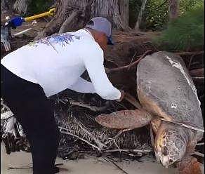 ഒരു കടല്ക്കരയില മരത്തിന്റെ വേരുകള്ക്കുളളിലാണ് ഒരു കൂറ്റന് ആമയുടെ കഴുത്ത് കുടുങ്ങിപ്പോയത്. ഏറെ നേരം കുടുങ്ങിയ ആമയെ ഒരു യുവാവ് മരത്തിന്റെ വേരറുത്ത ശേഷം കടലിലേക്ക് വിടുന്നതാണ് വീഡിയോയില് ഉള്ളത്.