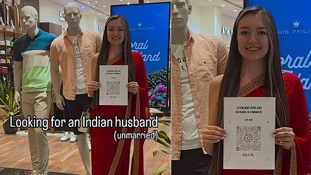 ഇന്ത്യന് യുവാക്കളില് നിന്നും അനുയോജ്യരായ വരന്മാരെ ക്ഷണിച്ച് ഇന്സ്റ്റഗ്രാം ഇന്ഫ്ലുവന്സറായ റഷ്യക്കാരി ഇന്ത്യയില്. ചുവന്ന സാരിയുടുത്ത് ഇന്ത്യയിലെ ഒരു മാളില് തന്റെ ഇന്സ്റ്റഗ്രാം പേജിന്റെ ക്യൂആര് കോര്ഡ് പിടിച്ചുകൊണ്ടാണ് ദിനാര എന്ന യുവതി സ്വന്തമായി വരനെ തേടുന്നത്. അനുയോജ്യരായ വരന്മാര് ഈ ക്യൂആര് കോര്ഡ് സ്കാന് ചെയ്ത് യുവതിക്ക് സന്ദേശമയക്കാം.
