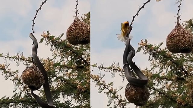 ഇന്സ്റ്റഗ്രാമില് പങ്കുവെച്ച വീഡിയോയാണ് വ്യാപകമായി പ്രചരിക്കുന്നത്. മരത്തില് കയറി പക്ഷിക്കൂട്ടില് തലയിട്ട് മുട്ടകള് വിഴുങ്ങാന് പാമ്പ് ശ്രമിക്കുന്നതാണ് വീഡിയോയുടെ തുടക്കം.