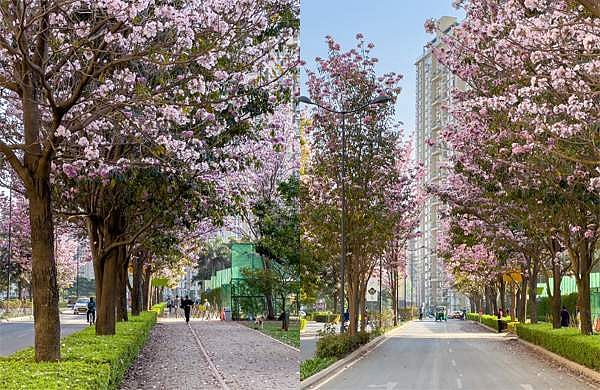 കൂട്ടത്തോടെ പൂത്തുനിൽക്കുന്ന മരങ്ങൾ നാഗരത്തെ പിങ്ക് നിറത്തിൽ മൂടും. സമൂഹമാധ്യമങ്ങളിൽ ഇതിന്റെ ചിത്രങ്ങളും വിഡിയോകളും ഇപ്പോൾ വൈറലാണ്.