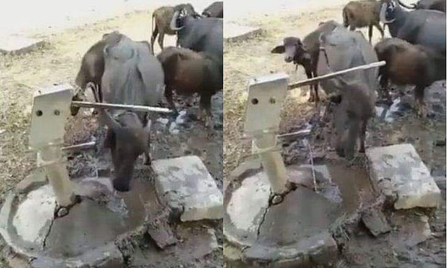 ദാഹിച്ചുവലഞ്ഞ പോത്ത് ഹാൻഡ് പമ്പ് പൈപ്പിൽ നിന്ന് സ്വന്തമായി പമ്പ് ചെയ്ത് വെള്ളം കുടിക്കുന്ന വിഡിയോയാണ് ട്വിറ്ററിൽ വൈറലാകുന്നത്.