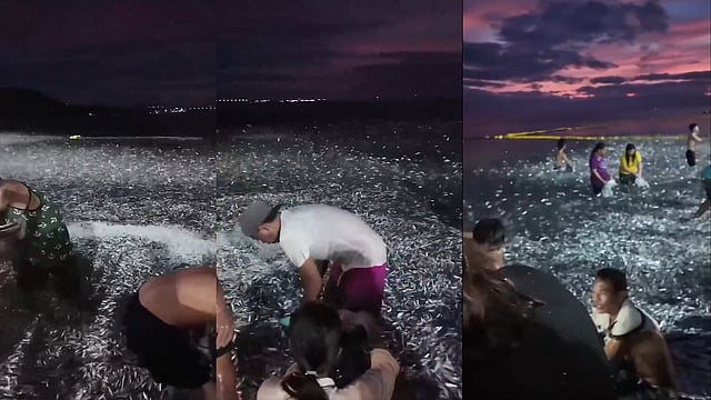 'ചാകര എന്ന് പറഞ്ഞാല് ഇതാണ്'. സോഷ്യൽമീഡിയയിൽ വൈറലായി ഫിലിപ്പിനിയന് ദ്വീപായ മിൻഡനാവോയിലെ സാരംഗനി തീരത്ത് പ്രത്യക്ഷപ്പെട്ട നീണ്ട മത്തി ചാകര. ആയിരമോ പതിനായിരമോ അല്ല കോടിക്കണക്കിന് മീനാണ് തീരത്ത് അടിഞ്ഞത്. മീനുകൾ കൂമ്പാരമായി ഒഴുകിയെത്തിയതോടെ തീരത്തിന്റെ നാല് കിലോമീറ്റർ ദൂരം വെള്ളി നിറമായി.