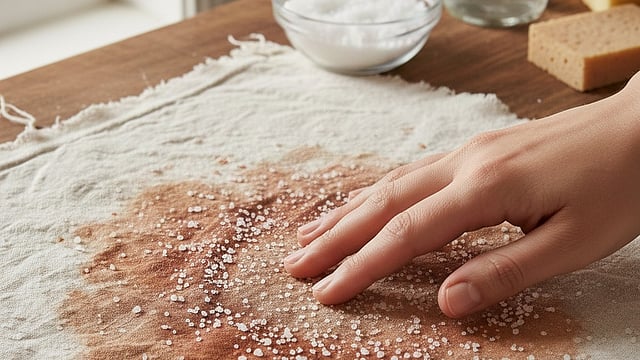 തുണിയില് പറ്റിപിടിച്ച കറ നീക്കാന് ഉപ്പ് വളരെ ഫലപ്രദമായ ഒന്നാണ്. പ്രത്യേകിച്ച് കാപ്പിക്കറ പോലുള്ളവ. കറ പിടിച്ചിയിടത്ത് അല്പം ഉപ്പ് വിതറാം. കുറച്ചുനേരം വച്ചശേഷം ബ്രെഷ് ഉപയോഗിച്ച് സ്ക്രബ് ചെയ്യാം.