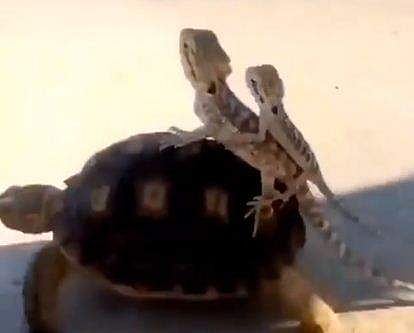 സുധാ രാമന് ഐഎഫ്എസാണ് ഈ വീഡിയോ ട്വിറ്ററില് ഉട്ടത്. ആയിരക്കണക്കിനാളുകളാണ് നിമിഷങ്ങള്ക്കകം വീഡിയോ കണ്ടത്. ഒരു ആമയുടെ പുറത്ത് കയറി രണ്ട് ഓന്തുകള് സഞ്ചരിക്കുന്നതാണ് വീഡിയോയിലുള്ളത്. മറ്റുള്ളവരെ സഹായിക്കുകയെന്നതാണ് ജീവിതലക്ഷ്യമെന്ന ദലൈലാമയുടെ ഉദ്ധരണിയും ഇതോടൊപ്പം ചേര്ത്തിട്ടുണ്ട്.