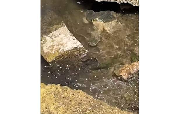ദേഹത്ത് വരകളുള്ള പാമ്പിനെയാണ് ആമ ആഹാരമാക്കിയത്. വെള്ളത്തിന്റെ ഒഴുക്കിന് അനുസരിച്ച് നീങ്ങിയ പാമ്പിനെ ഞൊടിയിടയില് ആമ പിടികൂടുന്നതാണ് വീഡിയോയുടെ ഉള്ളടക്കം. പാമ്പിനെ പിടികൂടി ഉടന് തന്നെ കല്ലിന്റെ അടിയിലേക്ക് തന്നെ ആമ മറയുന്നതും കാണാം.