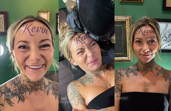 യുകെയിൽ നിന്നുള്ള ഒരു അന സ്റ്റാൻകോവ് എന്ന യുവതിയാണ് പങ്കാളിയുടെ പേര് നെറ്റിൽ ടാറ്റു ചെയ്ത് ഞെട്ടിച്ചത്. കെവിൻ എന്നാണ് പങ്കാളിയുടെ പേര്. നെറ്റിയിൽ പങ്കാളിയുടെ പേര് ടാറ്റു ചെയ്യുന്നതിന്റെ വിഡിയോയും യുവതി പങ്കുവെച്ചിട്ടുണ്ട്. വേദന സഹിച്ച് ടാറ്റു പൂർത്തിയാകുമ്പോൾ സന്തോഷത്തോടെ കണ്ണാടിക്ക് മുന്നിൽ ചെന്ന് അവന് ഇത് ഇഷ്ടമാകില്ലേ എന്നും യുവതി ചോദിക്കുന്നുണ്ട്.