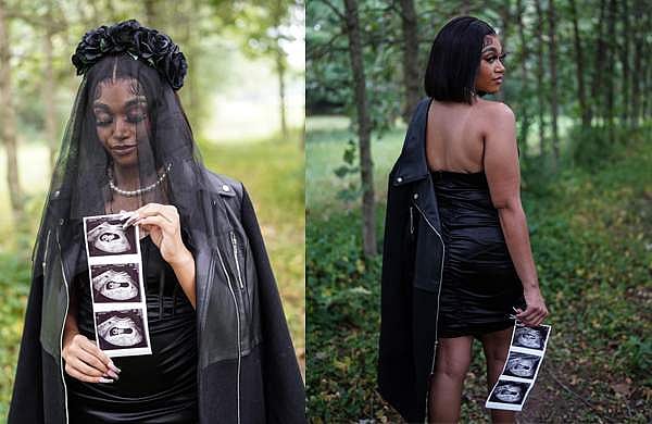 കറുത്ത വസ്ത്രത്തിൽ നിറവയറോടെ ദുഃഖിച്ച് നിൽക്കുന്ന ഗർഭിണി. 23കാരിയായ അമേരിക്കൻ യുവതിയാണ് ഈ വെറൈറ്റി ഫോട്ടോഷൂട്ടിന് പിന്നില്. കറുപ്പ് തീമാക്കിയായിരുന്നു ഫോട്ടോഷൂട്ട്. മരണാനന്തര ചടങ്ങിനെന്ന പോലെ കറുത്ത വസ്ത്രം ധരിച്ച് കയ്യില് സോണോഗ്രാഫ് ചിത്രങ്ങളും പിടിച്ചാണ് യുവതി നില്ക്കുന്നത്.