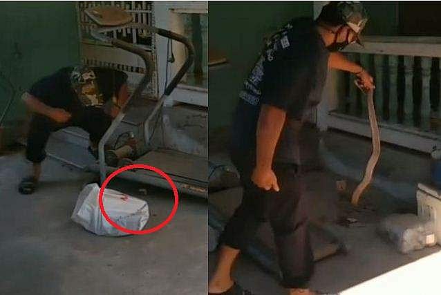 ട്രെഡ്മില്ലിൽ നിന്ന് കൂറ്റൻ മൂർഖൻ പാമ്പിനെ രക്ഷിക്കുന്ന വിഡിയോയാണ് സോഷ്യൽ മീഡിയയിൽ വൈറലാകുന്നത്. എലിയെ പിടിക്കാനെത്തിയപ്പോഴാണ് വീടിനു സമീപത്തു വച്ചിരുന്ന പഴയ ട്രെഡ്മില്ലിൽ മൂർഖൻ അകപ്പെട്ടത്. രക്ഷപെടാനായി ഓടിയ എലിയുടെ പിന്നാലെ പാഞ്ഞ മൂർഖൻ ഒടുവിൽ കുരുങ്ങി.