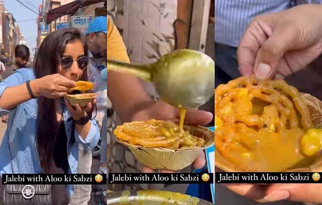സംഗതി പരീക്ഷണമെന്ന് പറയാനാകില്ല, മഥുരയിലെ വൃന്ദാവനത്തിലെ ഹിറ്റ് വിഭവമാണ് ഇതെന്നാണ് വിഡിയോയില് പറയുന്നത്. "അങ്ങനെ ഈ വിചിത്ര കോംബോയും പരീക്ഷിച്ചു!. മഥുരയിലെ വൃന്ദാവനത്തിലെ വളരെ പ്രസിദ്ധമായ ഒന്നാണ് ജിലേബിയും കിഴങ്ങുകറിയും കൂടിയുള്ള കോമ്പിനേഷന്. അതുകൊണ്ട് ഞാന് അവസാനം ഇതൊന്ന് പരീക്ഷിച്ചു", എന്ന് കുറിച്ചാണ് വിഡിയോ പങ്കുവച്ചിരിക്കുന്നത്.