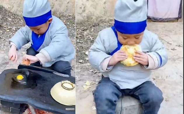 ഷെഫ് എന്ന് പറഞ്ഞാൽ അതേ കെട്ടിലും മട്ടിലുമാണ് ഈ കൊച്ചുമിടുക്കൻ വിഡിയോയിൽ പ്രത്യക്ഷപ്പെടുന്നത്. നീല ഷർട്ടും പാൻസും അതിനോട് യോജിക്കുന്ന തരത്തിൽ ഒരു കുഞ്ഞ് ഷെഫിന്റെ തൊപ്പിയും ധരിച്ചിട്ടുണ്ട്. വിറക് അടുപ്പിലാണ് പാചകം. എഗ് സാൻവിച്ചാണ് ഇന്നത്തെ വിഭവം. വളരെ അടുക്കും ചിട്ടയിലുമാണ് പാചകം.