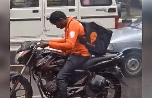 വൈറലാകുന്നത്. പെരുമഴയത്ത് ഓർഡറും ചുമന്ന് ബൈക്കിൽ ഇരിക്കുന്ന ഡെലിവറി ബോയെയാണ് വിഡിയോയിൽ കാണാൻ കഴിയുക. റെയിൻകോട്ടില്ലാതെ ശരീരമാസകലം നനഞ്ഞാണ് ചെറുപ്പക്കാരൻ ഭക്ഷണവുമായി കാത്തുനിൽക്കുന്നത്.