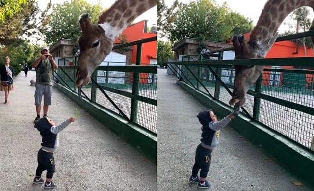 മാതാപിതാക്കൾക്കാപ്പം മൃഗശാല സന്ദർശിക്കാൻ എത്തിയപ്പോഴായിരുന്നു ഈ സ്നേഹപ്രകടനം. കുഞ്ഞിക്കൈയിൽ ഇല പിടിച്ച് ജിറാഫിന് നേരെ നീട്ടുകയായിരുന്നു കുട്ടി. ആഞ്ഞ് പരിശ്രമിച്ചിട്ടും കുഞ്ഞിന് എത്തിയില്ല. ഇത് കണ്ടപ്പോൾ നീളൻ കഴുത്ത് കുനിച്ച് ജിറാഫും ഇലവാങ്ങാൻ ശ്രമിക്കുന്നത് കാണാം. ഒടുവിൽ ഇരുവരുടെയും പരിശ്രമം ഫലം കണ്ടു. കുഞ്ഞ് നൽകിയ ഇലകൾ ജിറാഫിന് കഴിക്കാനായി.