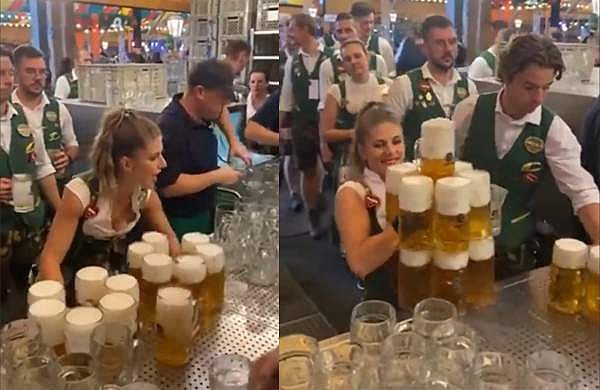 ജര്മനിയിലെ മ്യൂനിച്ചില് ഒക്ടോബര് ഫെസ്റ്റ് ആരംഭിച്ചിരിക്കുകയാണ്. ബിയര് ആണ് ഫെസ്റ്റിലെ പ്രധാന താരം. ഫെസ്റ്റിലെ കൗതുക കാഴ്ചകള് സോഷ്യല് മീഡിയയിലും വൈറലാകാറുണ്ട്. ഇത്തവണ ബിയര് വിളമ്പാന് നില്ക്കുന്ന വെയിട്രസ് ആണ് സോഷ്യല്മീഡിയ താരം.