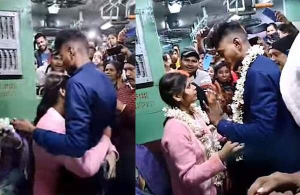 ഓടുന്ന ട്രെയിനിന്റെ കുലുക്കത്തിനിടെ ശ്രമപ്പെട്ട് വരന് വധുവിന് സിന്ദൂരവും താലിയും ചാര്ത്തി. ചുറ്റും കൂടി നിന്നവര് സാക്ഷികളായി. വധുവിന് തൊട്ടടുത്തിരുന്ന ഒരു സ്ത്രീ ഇരുവരുക്കും പൂമാല നല്കുന്നതും വിഡിയോയില് കാണാം. വിഡിയോ വളരെ ചുരുങ്ങിയ സമയം കൊണ്ട് സോഷ്യല്മീഡിയയില് കൗതുകമായി. അസന്സോള്-ജാസിദിഹ് ട്രെയിനിലാണ് ഈ അത്യപൂര്വ വിവാഹം നടന്നത്.