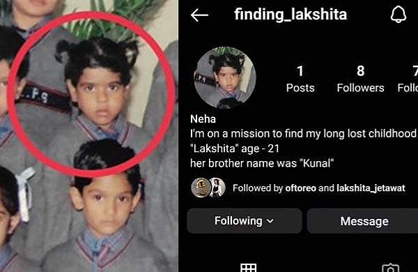 'നഷ്ടപ്പെട്ടു പോയ ബാല്യകാല സുഹൃത്തിനെ കണ്ടെത്താനുള്ള ശ്രമത്തിലാണ് ഞാൻ. ലക്ഷിത- പ്രായം 21, സഹോദരന്റെ പേര് കുനാൽ'- എന്ന് അക്കൗണ്ടിന്റെ ബയോയിൽ നേഹ എഴുതി. ഇൻസ്റ്റഗ്രാമിൽ ലക്ഷിത എന്ന പേരുള്ള എല്ലാ പ്രൊഫൈലുമായി നേഹ ബന്ധപ്പെട്ടു. അങ്ങനെ ഒടുവിൽ യഥാർഥ ലക്ഷിതയെ കണ്ടെത്തിയതായി നേഹ അറിയിച്ചു. ഇരുവരും തമ്മിൽ കണ്ടുമുട്ടിയത്തിന്റെ മനോഹര വിഡിയോയും നേഹ തന്റെ ഇൻസ്റ്റഗ്രാമിലൂടെ പങ്കുവെച്ചു.