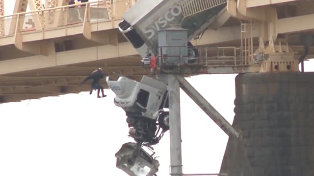 അമേരിക്കയിലെ ഒഹായോ നദിക്ക് കുറുകെയുള്ള പാലത്തിലാണ് സംഭവം. പാലത്തില് നിന്ന് താഴേക്ക് തൂങ്ങിക്കിടന്ന ട്രക്കില് നിന്ന് ഡ്രൈവറെ അതിസാഹസികമായി രക്ഷിക്കുന്ന ദൃശ്യങ്ങളാണ് വീഡിയോയുടെ ഉള്ളടക്കം.