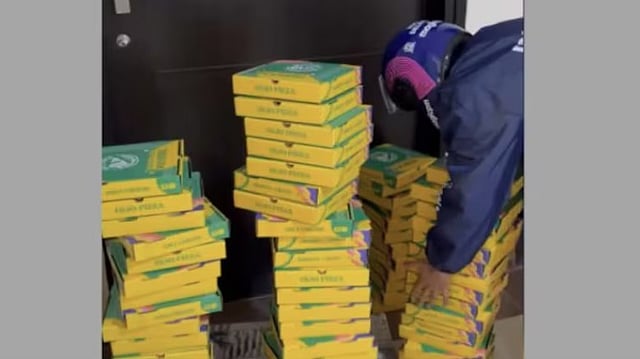 എക്സിന്റെ വീടിന്റെ വാതിലിന് മുന്നില് 100 പിസ ബോക്സുകള് അടുക്കിവെക്കുന്ന ഒരു ഡെലിവറി ബോയിയുടെ ചിത്രം ഓണ്ലൈനില് പ്രത്യക്ഷപ്പെട്ടതോടെയാണ് സംഭവം പുറംലോകം അറിയുന്നത്.