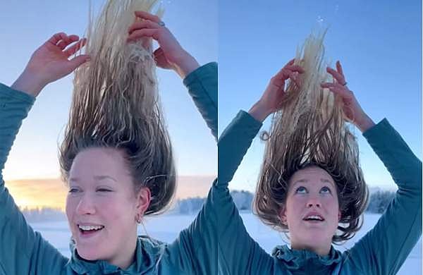 വടക്കൻ സ്വീഡനിൽ -30 ഡിഗ്രി സെൽഷ്യസിൽ പുറത്തിറങ്ങിയ യുവതിയുടെ മുടി മിനിറ്റുകൾക്കുള്ളിൽ ഐസ് കിരീടമാകുന്ന കാഴ്ചയാണ് വിഡിയോയിൽ.രാജ്യത്തെ ശൈത്യകാലം എത്ര ഭീകരമാണെന്ന് വിഡിയോയിൽ നിന്നും മനസിലാകും. സ്വീഡനിൽ 25 വർഷങ്ങൾക്ക് ശേഷം ഏറ്റവും തണുപ്പുള്ള ജനുവരി മാസത്തിലെ രാത്രിയാണ് ബുധനാഴ്ച രേഖപ്പെടുത്തിയത്.നോർഡിക്സിൽ മൈനസ് 43.6 ഡിഗ്രി സെൽഷ്യൽസ് ആണ് രേഖപ്പെടുത്തിയിരുന്നത്.