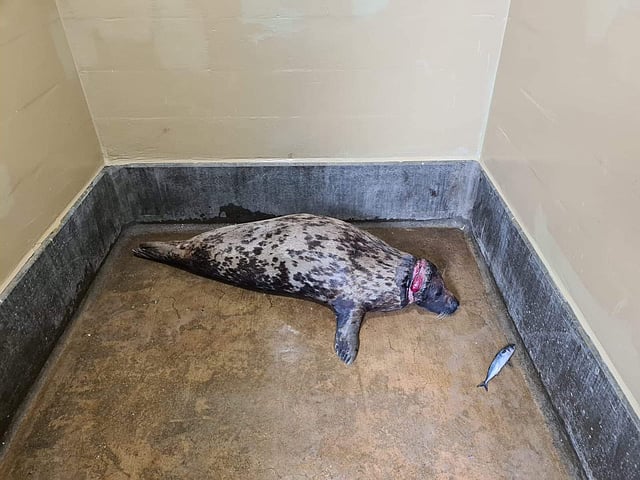 മുറിവേറ്റ ഭാഗങ്ങൾ തുന്നികെട്ടാനാവാത്ത നിലയിലാണ്. അതിനാൽ 25 കിലോഗ്രാം ഉപ്പ് കലക്കിയ വെള്ളത്തിൽ മുറിവ് കഴുകുക മാത്രമാണ് പോംവഴിയെന്നും ആർഎസ്പിസിഎ ആശുപത്രിയുടെ മാനേജരായ അലിസൺ ചാൾസ് പറയുന്നു. വളയം നീക്കം ചെയ്ത ശേഷമുള്ള നീർനായയുടെ ചിത്രങ്ങൾ ഫ്രണ്ട്സ് ഓഫ് ഹോഴ്സി സീൽസ് പുറത്തുവിട്ടിട്ടുണ്ട്.