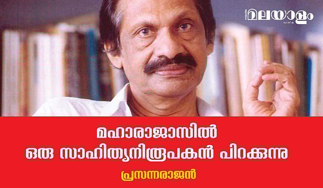 എറണാകുളം മഹാരാജാസ് കോളേജില് പഠിക്കുമ്പോള് സംഭവിച്ച പ്രധാന കാര്യം ഇതൊന്നുമല്ല. എം.എ ഒന്നാം വര്ഷം പഠിക്കുമ്പോള് അദ്ദേഹം അത്യന്തം പുതുമയുള്ള മൗലികതയുടെ സ്പര്ശമുള്ള ഒരു നിരൂപണ ലേഖനമെഴുതി. അത് അക്കൊല്ലത്തെ (1962) കോളേജ് മാഗസിനില് പ്രസിദ്ധീകരിക്കുകയും ചെയ്തു. അതോടെ മലയാള സാഹിത്യത്തില് ഒരു സാഹിത്യ നിരൂപകന് പിറവിയെടുത്തു.
