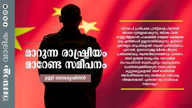 ബി.ജെ.പി തെരഞ്ഞെടുപ്പ് കമ്മിഷന്റെ നിഷ്പക്ഷതയും സുതാര്യതയും അട്ടിമറിച്ചിരിക്കുന്നു. ബി.ജെ.പി വോട്ടിങ് യന്ത്രത്തില് ക്രമക്കേട് കാണിക്കുന്നു. ബി.ജെ.പി മാധ്യമങ്ങളെ കയ്യടക്കി നുണപ്രചാരണം നടത്തുന്നു. ബി.ജെ.പി ഇന്ത്യന് ജുഡീഷ്യറിയെ ചൊല്പ്പടിയിലാക്കിയിരിക്കുന്നു. ബി.ജെ.പി തങ്ങള്ക്കനുകൂലമായ വിധത്തില് മണ്ഡല പുനര്നിര്ണ്ണയം നടത്തിക്കൊണ്ടിരിക്കുന്നു (ഉദാഹരണം ജമ്മു-കശ്മീര്). ബി.ജെ.പി പ്രതിപക്ഷ പാര്ട്ടികളെ പിളര്ത്തി അവരെ ദുര്ബ്ബലമാക്കുന്നു. ബി.ജെ.പിയെ വെല്ലുവിളിക്കാന് പാകത്തില് രാജ്യത്ത് ശക്തമായ ഒരു എതിര്ചേരി ഇല്ലാതായിരിക്കുന്നു. ഇങ്ങനെ എന്തെല്ലാം മറുപടികളായി നമുക്ക് പ്രതീക്ഷിക്കാം. എന്നാല്, ഇതൊന്നുമല്ല ബി.ജെ.പിയുടെ പ്രതീക്ഷയ്ക്കും ആത്മവിശ്വാസത്തിനും കാരണം. അത് ഇന്ത്യന് സാമൂഹിക ഘടനയില് സംഘപരിവാര് ബുദ്ധിപൂര്വ്വം ആസൂത്രണം ചെയ്തെടുത്തിരിക്കുന്ന തന്ത്രപരമായ കൂട്ടുകെട്ടുകളാണ്. അത് ജാതിയില് അധിഷ്ഠിതമായ ഒരു സവിശേഷ സമവാക്യ നിര്മ്മാണമാണ്. എന്താണ് ആ സവിശേഷ സമവാക്യം?