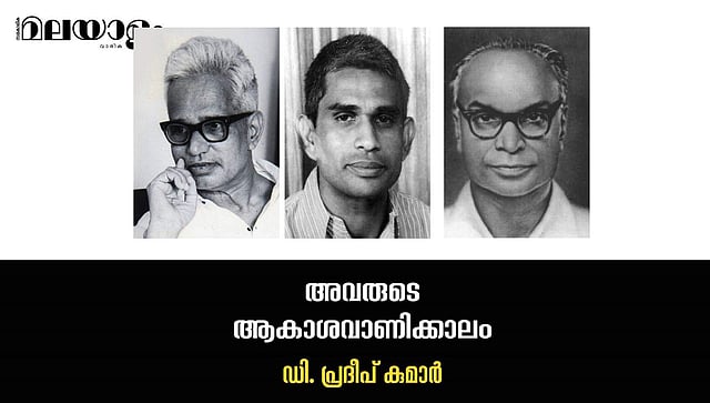 മഹാകവി ജി. ശങ്കരക്കുറുപ്പും പി. കേശവദേവും സി.ജെ. തോമസും ആകാശവാണിയില് ജോലി ചെയ്തിരുന്നു: തിരുവനന്തപുരം നിലയത്തില് പ്രൊഡ്യൂസര്മാരായിരുന്നു, ശങ്കരക്കുറുപ്പും കേശവദേവും; സി.ജെ. തോമസ് അസിസ്റ്റന്റ് പ്രൊഡ്യൂസറും. മൂന്നാളും ഏതാണ്ട് ഒരേ കാലത്ത് നിയമിതരായി; പല കാരണങ്ങളാല്, ആകാശവാണിയില്നിന്ന് എല്ലാവരും വിട്ടുപോയി.