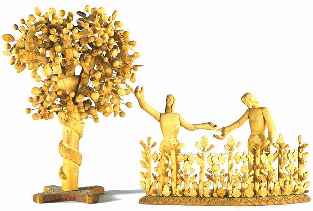 സാത്താനായ പാമ്പ് ഹവ്വയെ പൂണ്ടടക്കം പിടിച്ച്