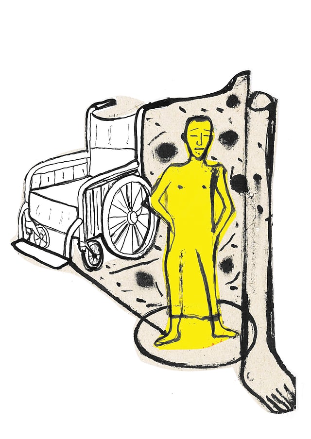 ഇരുട്ട് കാത്തുകിടക്കുന്നതായി ചക്രക്കസേരയെ വായിച്ചു