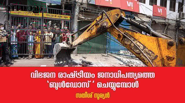 ഡല്ഹിയാകട്ടെ, ഏറെ മുന്പുതന്നെ ബുള്ഡോസര് ഉപയോഗിച്ചുള്ള വംശീയോന്മൂലനത്തിന്റെ നിന്ദ്യമായ മാതൃക സൃഷ്ടിക്കപ്പെട്ടിട്ടുള്ള ഇടമാണ്. 46 വര്ഷങ്ങള്ക്കു മുന്പേ ഇതുപോലെ ഒരു ഏപ്രില് 19-ന്. കൃത്യമായി പറഞ്ഞാല് 1976-ല് അടിയന്തരാവസ്ഥക്കാലത്ത്. ഇന്ദിരാഗാന്ധിയുടെ പുത്രന് സഞ്ജയ് ഗാന്ധിയുടെ അനുചരവൃന്ദത്തില് പെട്ടയാളും പിന്നീട് ജമ്മു-കശ്മീര് ഗവര്ണറും ബി.ജെ.പി നേതാവുമായിരുന്ന ജഗ്മോഹന്റെ നേതൃത്വത്തിലുള്ള ഡല്ഹി ഡവലപ്മെന്റ് അഥോറിറ്റി ടര്ക്ക്മാന് ഗേറ്റിലും മറ്റും കെട്ടിടങ്ങളും വീടുകളും ഇടിച്ചുനിരത്തിയത് ചരിത്രത്തിലുണ്ട്.