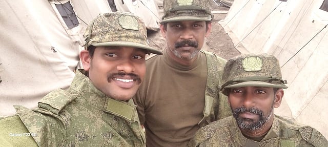 ''മിലിട്ടറി ക്യാന്റീനിലാണ് ജോലി. കൂടാതെ ആര്മി ക്യാമ്പിലെ ഇലക്ട്രിക്കല്, പ്ലംബിങ്ങ് ജോലികളും ഉണ്ടാകും. ഇങ്ങനെയായിരുന്നു പറഞ്ഞിരുന്നത്. അതിനാല് ആര്മിയില് ചേരേണ്ടിവരും. രണ്ടു രണ്ടരയാഴ്ച നീളുന്ന ട്രെയ്നിംഗ് ഉണ്ടാകുമെന്നും പറഞ്ഞിരുന്നു. സുരക്ഷാകാര്യങ്ങള് ഉണ്ടായതുകൊണ്ട് ഡ്രോണ് അറ്റാക്ക് ഒക്കെ വരുമ്പോള് അതിനെ തടയാനും മറ്റുമായിട്ടാണ് ഇത്തരത്തിലൊരു പരിശീലനം എന്നും പറഞ്ഞു. റഷ്യയില് എത്തിയതിനുശേഷം ഒന്നു വിശ്രമിക്കാന്പോലും അനുവാദമുണ്ടായില്ല. പെട്ടെന്നുതന്നെ ആര്മി ക്യാമ്പിലേയ്ക്ക് പോകേണ്ടിവന്നു'' എന്ന് സന്തോഷ് പറയുന്നു. മോസ്കോയില്നിന്നും 200 കിലോമീറ്റര് അകലെയുള്ള തുള ആര്മി ക്യാംപിലേയ്ക്കാണ് ആദ്യം കൊണ്ടുപോയത്. അവിടെവെച്ച് സന്ദീപിനേയും സിബിനേയും മറ്റുള്ളവരേയും സന്തോഷ് കണ്ടുമുട്ടി. ''ഇന്ത്യന് പാസ്പോര്ട്ട് വാങ്ങിവെയ്ക്കുകയും റഷ്യന് പാസ്പോര്ട്ട് എടുക്കാന് നിര്ദ്ദേശിക്കുകയുമാണ് അവര് ആദ്യം ചെയ്തത്. ആര്മിയില് ചേരണമെങ്കില് റഷ്യന് പാസ്പോര്ട്ട് നിര്ബ്ബന്ധമാണ്. ആദ്യം ഒരു മാസത്തോളം അവിടെ കഴിഞ്ഞു. അതിനുശേഷം റോസ്തോവിലുള്ള ആര്മി ക്യാമ്പിലേയ്ക്കു മാറ്റി. കര്ശനമായ സൈനിക പരിശീലനം നേടാന് ഞങ്ങളെ അവര് നിര്ബ്ബന്ധിച്ചു. 20 ദിവസത്തെ പരിശീലനത്തിനു ശേഷം ഞങ്ങളെ നുഹാന്സ് എന്ന ആര്മി ക്യാംപിലേയ്ക്കു മാറ്റി. പിന്നീട് 70 ദിവസം അവിടെ കഴിഞ്ഞു. 7000 റൂബിള് ആദ്യം ശമ്പളമായി കിട്ടി. പിന്നീട് 17,000-വും പിന്നീട് 40,000-വും കിട്ടി. ചൈന ഉള്പ്പെടെ മറ്റു രാജ്യങ്ങളില്നിന്നുള്ള ആളുകള് അവിടെ ഉണ്ടായിരുന്നു. ഇതിനിടയില് രണ്ടാഴ്ച മാത്രമാണ് മറ്റു ജോലികള് ചെയ്യാനായത്. ആ സമയത്തുമാത്രം തോക്കും മറ്റു സൈനികോപകരണങ്ങളും ഉപയോഗിക്കേണ്ടിവന്നില്ല'' -സന്തോഷ് പറഞ്ഞു. അതിനിടയ്ക്ക് റഷ്യന് സിം കാര്ഡ് സംഘടിപ്പിച്ച് സന്തോഷ് വീട്ടിലേയ്ക്കു വിളിച്ചു. ''സന്ദീപിന്റെ കൂടെ പോയ ഈജിപ്തുകാരില് കുറച്ചുപേര് ഞങ്ങളുടെ കൂടെയുണ്ടായിരുന്നു. അങ്ങനെയാണ് സന്ദീപിന്റെ വിവരങ്ങള് അറിഞ്ഞിരുന്നത്. ആ സമയത്താണ് സന്ദീപ് വാട്സ്ആപ്പില് ശബ്ദസന്ദേശം അയക്കുന്നത്. പരിശീലനം പൂര്ത്തിയാതുകൊണ്ടുതന്നെ ജെയ്നിനും ബിനിലിനും ഭക്ഷണവും വെള്ളവും എത്തിക്കുന്ന ജോലിയും തനിക്ക് സെക്യൂരിറ്റി ജോലിയും ശരിയായി'' എന്നാണ് സന്ദീപ് പറഞ്ഞത്. എന്നാല്, പിന്നീട് സന്ദീപിനെക്കുറിച്ച് വിവരമൊന്നും ലഭിച്ചില്ല. പിന്നീട് സന്ദീപിന്റെ കൂടെയുള്ള ഈജിപ്തുകാരന് അപകടം പറ്റിയെന്നും ഞങ്ങള് അറിഞ്ഞു. പേടി ഒന്നുകൂടി വര്ദ്ധിച്ചു. അപ്പോഴാണ് റഷ്യയിലെ ഏജന്റായ സന്ദീപ് സാര് മുഖാന്തിരമാണ് സന്ദീപ് ചന്ദ്രനേയും മറ്റുള്ളവരേയും യുക്രെയ്ന് ബോര്ഡറിലാണ് പോസ്റ്റ് ചെയ്തതെന്ന് അറിയുന്നത്. പിന്നീട് സന്ദീപ് ഷെല്ലാക്രമണത്തില് കൊല്ല