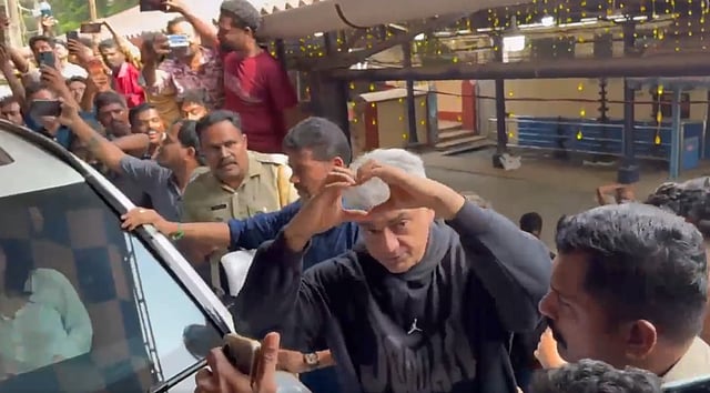 പാലക്കാട്: കുടുംബസമേതം പാലക്കാട് പെരുവെമ്പ് ഊട്ടുകുളങ്ങര ഭഗവതി ക്ഷേത്രത്തില് ദര്ശനം നടത്തി തെന്നിന്ത്യന് താരം അജിത് കുമാര്. ഭാര്യയും മലയാളികളുടെ പ്രിയതാരവുമായ ശാലിനി മകന് ആദ്വിക് എന്നിവര്ക്കൊപ്പമായിരുന്നു താരത്തിന്റെ ക്ഷേത്രസന്ദര്ശനം. ഈ വര്ഷം ഇത് രണ്ടാം തവണയാണ് താരം കുടുംബസമേതം ക്ഷേത്രത്തിലെത്തുന്നത്.
