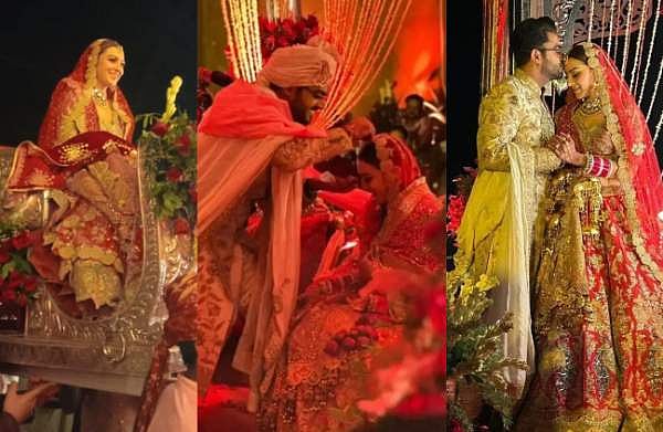 പരമ്പരാഗത രാജസ്ഥാനി രീതിയിലായിരുന്നു വിവാഹം. ഗോൾഡൻ വർക്കോടു കൂടിയ ചുവന്ന ലെഹങ്കയായിരുന്നു ഹൻസികയുടെ വേഷം. ഷർവാണിയാണ് സോഹേൽ ധരിച്ചത്. പല്ലക്കിലേറിയാണ് ഹൻസിക വിവാഹ വേദിയിൽ എത്തിയത്. സോഷ്യൽ മീഡിയയിൽ വൈറലാവുകയാണ് വിവാഹചിത്രങ്ങൾ.