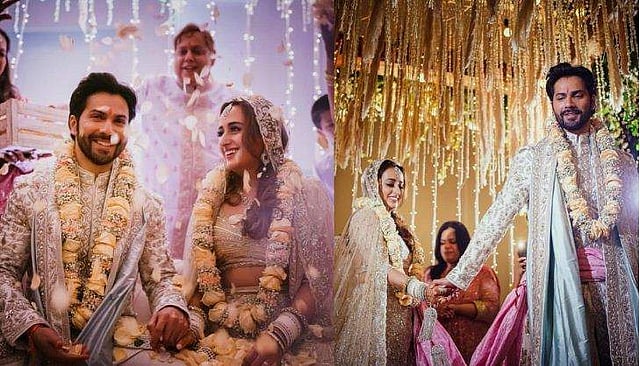 കുട്ടിക്കാലം മുതലുള്ള ഒന്നിച്ചുള്ള ഇവർ വർഷങ്ങളായി പ്രണയത്തിലായിരുന്നു. സിൽവർ വർക്കുകൾകൊണ്ട് അലങ്കരിച്ച പേസ്റ്റൽ നിറത്തിലുള്ള ലെഹങ്കയായിരുന്നു നടാഷയുടെ വേഷം. അതേ നിറത്തിലുള്ള ഷർവാണിയാണ് വരുൺ ധരിച്ചിരുന്നത്. അതിനൊപ്പം അക്വാ ബ്ല്യൂവിലുള്ള ഷാൾ കൂടി വന്നപ്പോൾ കൂടുതൽ മനോഹരമായി. പ്രമുഖ സെലിബ്രിറ്റി ഡിസൈനറായ മനീഷ് മൽഹോത്രയാണ് വസ്ത്രങ്ങൾ ഒരുക്കിയത്.