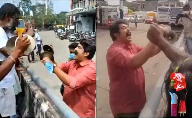 തദ്ദേശ ഉപതെരഞ്ഞെടുപ്പിൽ കൊച്ചി കോർപറേഷനിൽ എൽഡിഎഫ് വിജയത്തിന്റെ ആഹ്ളാദപ്രകടനത്തിൽ പങ്കെടുത്ത് നടന്മാരായ ജോജു ജോർജും വിനായകനും. താളം പിടിക്കുന്ന ജോജുവിനെയും താളത്തിനൊപ്പം ചുവടുവെക്കുന്ന വിനായകനെയുമാണ് സോഷ്യൽ മീഡിയയിൽ പ്രചരിക്കുന്ന വിഡിയോകളിൽ കാണാനാകുക.