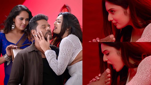 പ്രഭുദേവയും അനസൂയയും റായ് ലക്ഷ്മിയും ശ്രീഗോപികയും ഒരുമിച്ചെത്തുന്ന ഗാന രംഗമാണ് വിവാദമായി മാറിയിരിക്കുന്നത്. ഇറോട്ടിക് രീതിയില് ചിത്രീകരിച്ചിരിക്കുന്ന ഗാനത്തില് ശ്രീഗോപിക പ്രഭുദേവയുടെ കാലിലെ വിരലില് കടിക്കുന്ന രംഗമുണ്ട്. ഇതാണ് വിമര്ശിക്കപ്പെടുന്നത്.