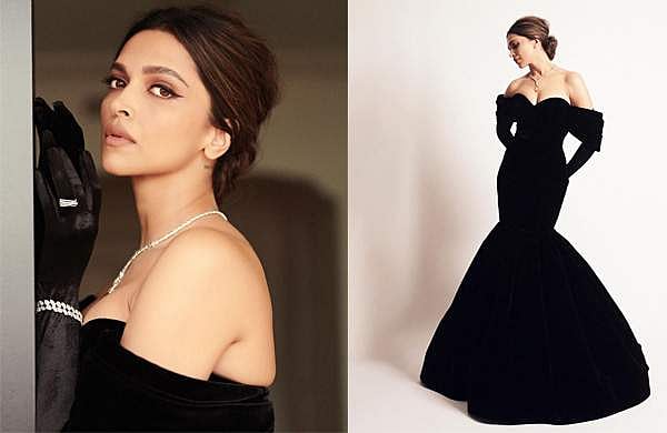 വെൽവെറ്റ് ഓഫ് ഷോൾഡർ ഗൗണിൽ ഒരു പഴയകാല ഹോളിവുഡ് സ്റ്റൈലിലാണ് ദീപിക ഒരുങ്ങിയത്. ഫുൾ സ്ലീവിൽ തോളോട് ചേർത്ത് നൽകിയിരിക്കുന്ന ഡ്രേപ്പിങ്സ് ഡിസൈനിന്റെ മറ്റൊരു പ്രത്യേകതയാണ്. കൈയിൽ ഒപ്പേറ ഗ്ലൗസും അണിഞ്ഞിരുന്നു. മുകൾ ഭാഗം ശരീരത്തോട് ഒട്ടിക്കിടക്കുന്ന മെർമേയ്ഡ് ശൈലിയിലാണ് ഗൗണിന്റെ ഡിസൈൻ.