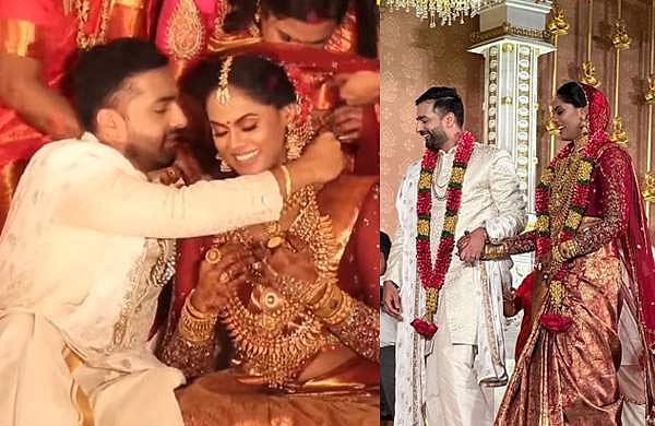 ചുവന്ന പട്ടു സാരിയിൽ അതിസുന്ദരിയായിരുന്നു കാർത്തിക. സീക്വൻസ് വർക്കോടുകൂടിയ ഫുൾ സ്ലീവ് ബ്ലൗസിനൊപ്പമാണ് പെയർ ചെയ്തത്. സർവാഭരണ വിഭൂഷിതയായി രാഞ്ജിയെ പോലെയാണ് കാർത്തിക ഒരുങ്ങിയത്. വെള്ള കുർത്തയായിരുന്നു രോഹിത്തിന്റെ വിഷം.