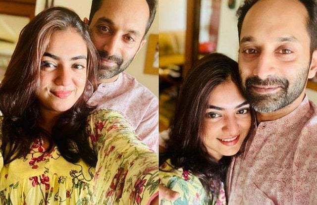 ഹദിനൊപ്പം പെരുന്നാൾ ആഘോഷിച്ചതിന്റെ ചിത്രങ്ങൾ പങ്കുവച്ച് നടി നസ്രിയ നസീം. ഈദ് മുബാറക്ക് നേർന്നുകൊണ്ടാണ് ഇരുവരും ഒന്നിച്ചുള്ള സെൽഫികൾ നസ്രിയ പങ്കുവച്ചത്. മഞ്ഞ നിറത്തിലെ ഫ്ളോറൽ ചുരിദാർ ആയിരുന്നു നസ്രിയയുടെ വേഷം. കു‌ർത്തയാണ് ഫഹദ് ധരിച്ചിരിക്കുന്നത്.