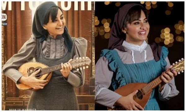 ചിത്രത്തിൽ പ്രഭുദേവ നൃത്തസംവിധാനം ചെയ്ത കണ്ണില് കണ്ണില് ... എന്ന ഗാനത്തിലെ മഞ്ജുവിന്റെ ലുക്കാണ് ഒന്ന്. കേളി ഹെയർ സ്റ്റൈലിൽ ലുക്കിൽ ചുവന്ന ലോങ് സ്ലീവ് ടോപ്പും കളർഫുൾ ഫ്രിൽ സ്കർട്ടുമാണ് വേഷം. ഗ്രേ ടോപ്പും നീല ഉടുപ്പും ചേർന്ന മെയ്ഡ് ലുക്കാണ് രണ്ടാമത്തേത്. മേക്കപ്പ് ആർട്ടിസ്റ്റ് രേഷ്മ ഷിബുവാണ് ഫോട്ടോഷൂട്ടിന് പിന്നിൽ.