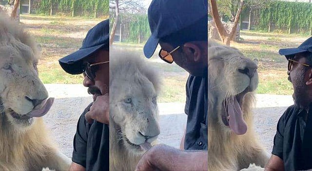 ചില്ലുകൂട്ടിൽ കിടക്കുന്ന സിംഹത്തോടെ കുശലം ചോദിക്കുന്ന അജുവിനെയാണ് വിഡിയോയിൽ കാണുന്നത്. അജുവിനെ കണ്ടതും അടുത്തേക്ക് വന്ന സിംഹം കണ്ണാടിക്കടുത്ത് തന്നെ കിടക്കുന്നതും വീഡിയോയിൽ കാണാം. 'നീ പൊന്നപ്പനല്ലടാ തങ്കപ്പനാ.. തങ്കപ്പൻ!' എന്ന അടിക്കുറിപ്പിലാണ് വിഡിയോ പങ്കുവച്ചിരിക്കുന്നത്. മാന്നാര് മത്തായി സ്പീകിങ്ങി'ൽ ജനാർദ്ദനന്റെ ഹിറ്റ് ഡയലോഗും വിഡിയോയിൽ കേൾക്കാം.