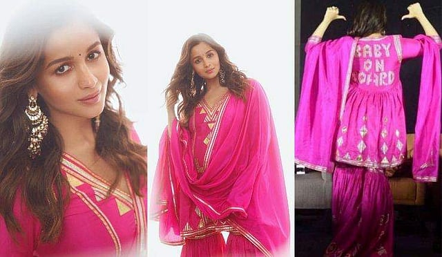 ഹൈദരബാദിൽ നടന്ന പ്രീറിലീസ് ഇവന്റിൽ താരം ധരിച്ച പിങ്ക് ഷറാറ സെറ്റാണ് വിവാദമായത്. വസ്ത്രത്തിന്റെ പുറകിലായി ‘ബേബി ഓൺ ബോർഡ്’ എന്ന് എഴുതിയിരുന്നു. പരിപാടിക്കിടെ അവതാരകനായ കരൺ ജോഹർ ആലിയ രണ്ട് കുട്ടികൾക്കാണു ജന്മം നൽകുന്നതെന്ന് പറഞ്ഞു. അതിലൊന്നാണ് ബ്രഹ്മാസ്ത്ര. അടുത്തത് വൈകാതെ ഉണ്ടാകും എന്നും പറഞ്ഞു. ഈ സമയം ആലിഞ്ഞ തിരിഞ്ഞു നിന്ന് ഷറാറയിൽ ‘ബേബി ഓൺ ബോര്ഡ്’ എന്ന് എഴുതിയത് കാണിച്ചു കൊടുക്കുകയായിരുന്നു.