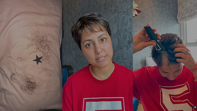 കാന്സര് പോരാട്ടത്തിലാണ് ബോളിവുഡ് താരം ഹിന ഖാന്. സോഷ്യല് മീഡിയയിലൂടെ താരം തന്റെ ചികിത്സയുടെ വിവരങ്ങള് ആരാധകരുമായി പങ്കുവെക്കാറുണ്ട്. നീണ്ട മുടി വെട്ടിമാറ്റുന്നതിന്റെ വിഡിയോ താരം മുന്പ് പങ്കുവച്ചിരുന്നു. ഇപ്പോള് കീമോതെറാപ്പിയെ തുടര്ന്നു മുടികൊഴിച്ചില് കടുത്തതോടെ താരം തലമൊട്ടയടിച്ചിരിക്കുകയാണ്. വൈകാരികമായ വിഡിയോയ്ക്കൊപ്പമാണ് മുടി മൊട്ടയടിച്ച വിവരം താരം അറിയിച്ചത്.