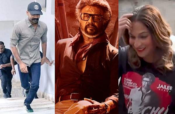 ഹിമാലയ യാത്രയിലായതിനാൽ രജനീകാന്ത് തിയറ്ററിൽ എത്തിയില്ല. ബാക്കി കുടുംബാംഗങ്ങളെല്ലാം തിയറ്ററിൽ എത്തിയിരുന്നു. രജനിയുടെ വീട്ടില് നിന്നാണ് യാത്ര, ലിംഗ എന്നിവര് വന്നത്. രജനികാന്തിന്റെ ഭാര്യ ലത രജനികാന്ത് രോഹിണി തീയറ്ററില് ജയിലര് ഫസ്റ്റ് ഡേ ഫസ്റ്റ് ഷോ കാണാന് എത്തിയിരുന്നു. തൊപ്പി ധരിച്ച് കാഷ്വൽ ലുക്കിലായിരുന്നു ധനുഷിന്റെ വരവ്. ജയിലറിലെ ഹുക്കും ഗാനത്തിന്റെ വരികള് എഴുതിയ രജനിയുടെ ചിത്രം പ്രിന്റ് ചെയ്ത ടീ ഷര്ട്ട് ധരിച്ചാണ് ഐശ്വര്യ എത്തിയത്.