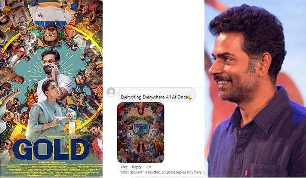 'എവരിതിങ് എവെരിവെയർ ഓൾ അറ്റ് വൺസ്' എന്ന ഇംഗ്ലിഷ് സിനിമയുടെ പോസ്റ്റർ അതേപടി കോപ്പിയടിച്ചെന്നാണ് കമന്റ് ബോക്സിൽ ഒരാൾ ആരോപിച്ചത്. എന്നാൽ ഇതിന് മറുപടിയായി അൽഫോൻസ് തന്നെ സംവിധാനം ചെയ്ത നേരം എന്ന സിനിമയുടെ പോസ്റ്റർ പങ്കുവയ്ക്കുകയായിരുന്നു സംവിധായകൻ. നേരത്തിന്റെ പോസ്റ്ററിന്റെ അതേ പാറ്റേൺ തന്നെയാണ് ഗോൾഡിന്റെ പോസ്റ്ററിലും പിന്തുടർന്നത്.