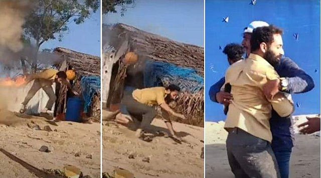 പൊട്ടിത്തെറികൾക്കിടയിലൂടെ ഓടുന്ന ഫഹദ്, തെറിച്ച് താഴേക്ക്; വിഡിയോ
