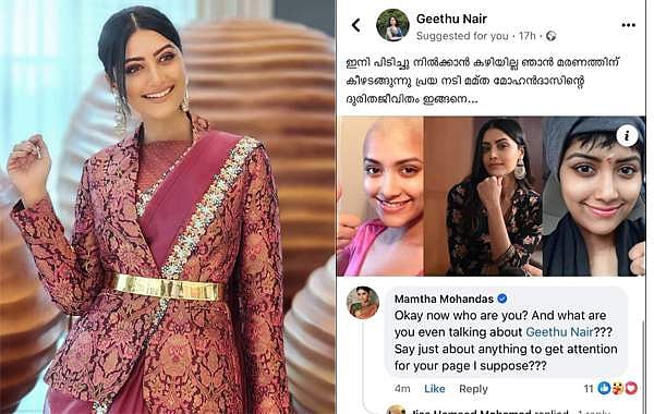 'ഇനി പിടിച്ചു നില്ക്കാന് കഴിയില്ല, ഞാന് മരണത്തിന് കീഴടങ്ങുന്നു, പ്രിയ നടി മംമ്ത മോഹന്ദാസിന്റെ ദുരിത ജീവിതം ഇങ്ങനെ'എന്ന തലക്കെട്ടോടെ ആയിരുന്നു പോസ്റ്റ്. ഗീതു നായര് എന്ന ഫെയ്സ് ബുക്ക് പേജിലാണ് ഇത്തരത്തിലൊരു പോസ്റ്റ് പ്രത്യക്ഷപ്പെട്ടത്. വാര്ത്ത സത്യമാണെന്ന് വിശ്വസിച്ച് നിരവധിപ്പേരാണ് കമന്റ് ചെയ്തത്. കമന്റ് ബോക്സിലെ ആളുകളുടെ പ്രതികരണം കണ്ട മംമ്ത തന്നെ പ്രതികരിച്ചു.