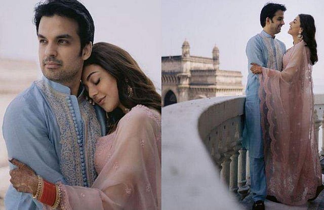 വിവാഹത്തിനു പിന്നാലെ ഗൗതമിനൊപ്പമുള്ള വിരുന്നുകളുടെയും പൂജകളുടെയും ചിത്രങ്ങളും കാജൽ മുമ്പ് പങ്കുവച്ചിട്ടുണ്ട്. മുംബൈ താജ് പാലസ് ഹോട്ടലിൽ നിന്നുള്ള ഫോട്ടോഷൂട്ട് ചിത്രങ്ങളാണ് കാജൽ ഒടുവിലായി പങ്കുവെച്ചത്.